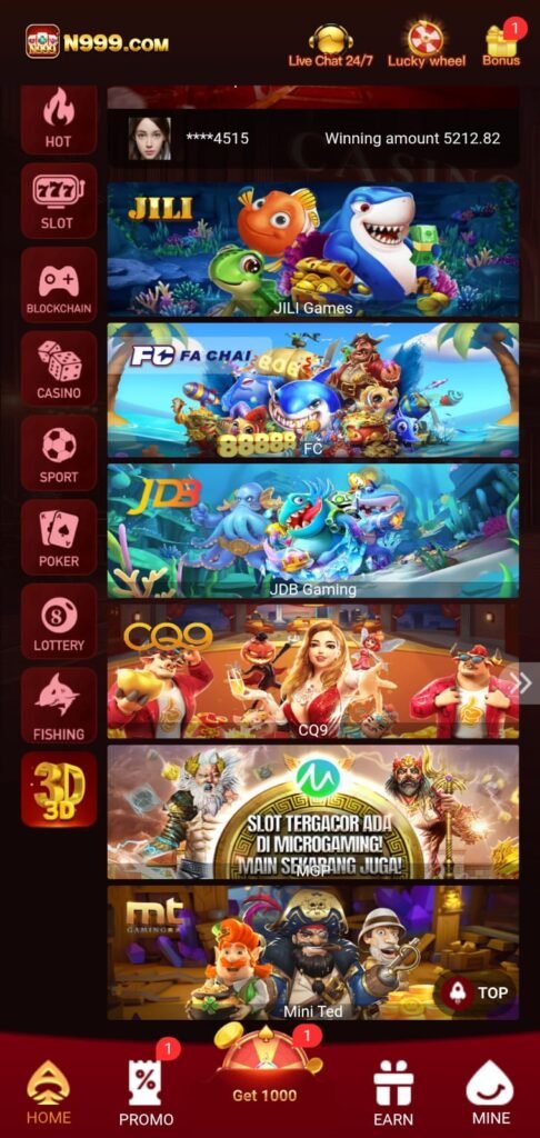 N999 Game APK Download 2026 provides access to 50+ games, such as: