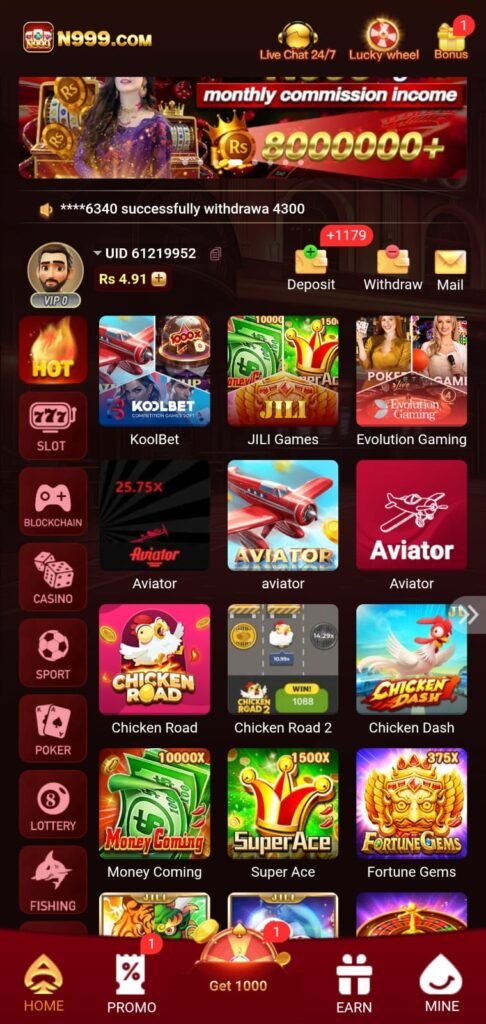 Similarly, N999 is a vibrant online video gaming platform based in Pakistan that offers a wide variety of exciting games. It features popular options such as slots, Teen Patti, Rummy, and many more. Players can compete with others for real money while enjoying a fun and social gaming experience with friends.