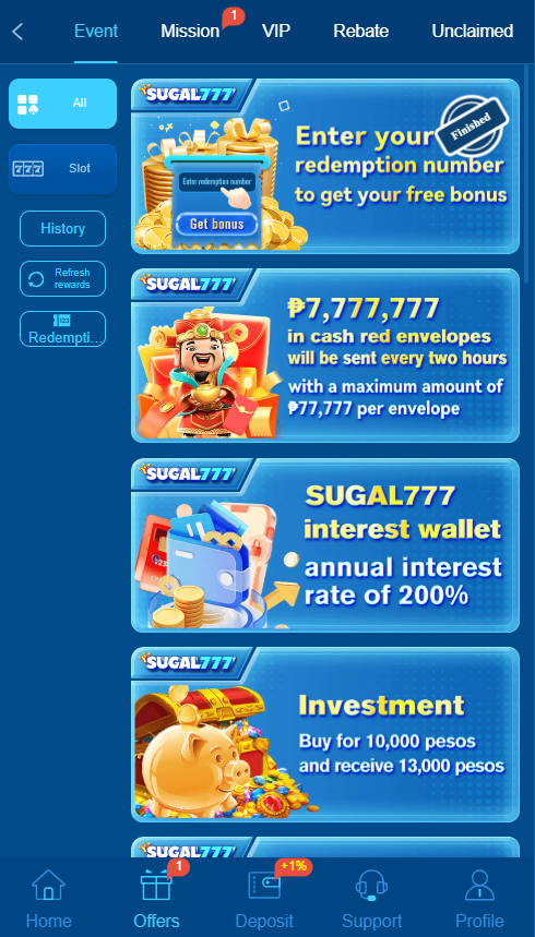 In addition Sugal777 Game awards those players who invite others to join. You receive bonus rewards when your referral register and plays. As a result, you expand and multiply your earning capacity as well as growing your circle.