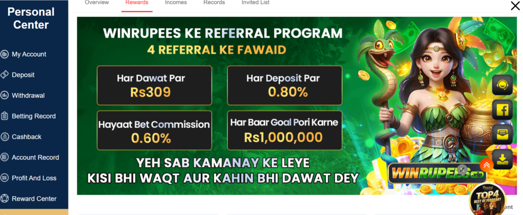 Win Rupees Game gives you a welcome bonus when registering so that you can increase your balance. Moreover, the regular players get cashbacks and offers.